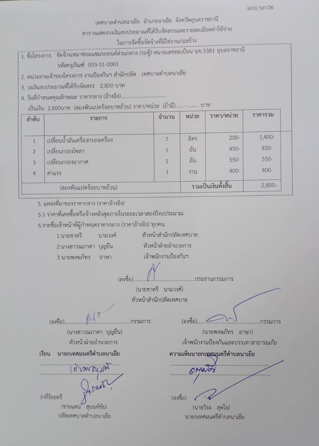 ตารางแสดงวงเงินงบประมาณที่ได้รับจัดสรรและรายละเอียดค่าใช้จ่าย การจัดซื้อจัดจ้างที่มิใช่งานก่อสร้าง การจ้างเหมาซ่อมแซมครุภัณฑ์รถยนต์ส่วนกลางยี่ห้อโตโยต้า หมายเลขทะเบียน นข 3381(สป.)