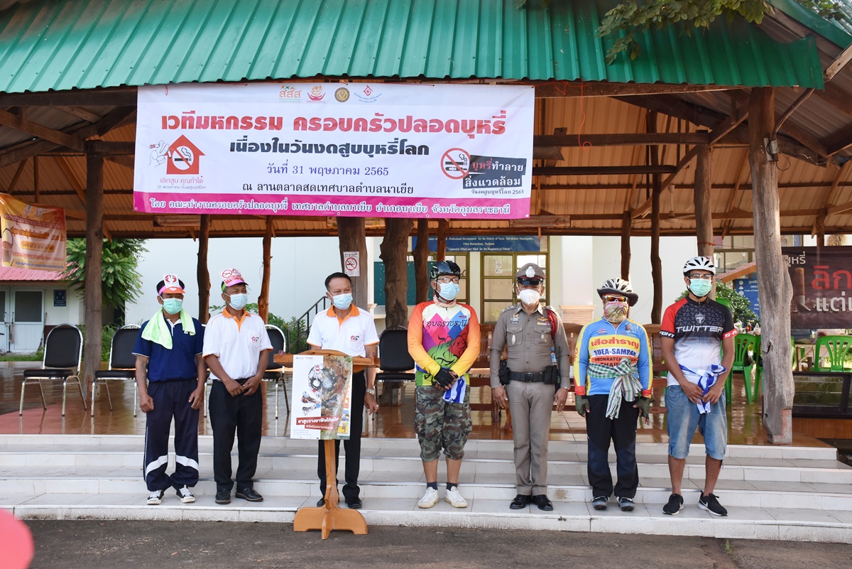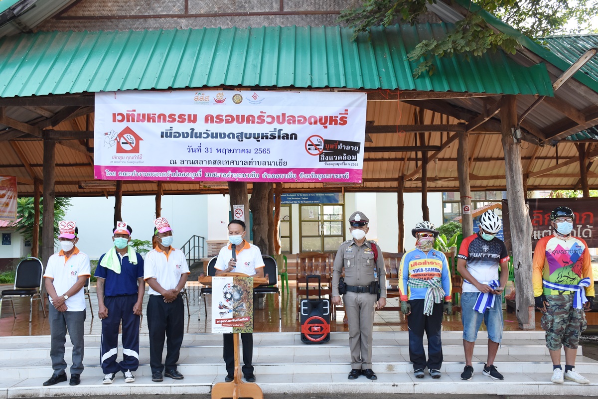 วันอังคาร, 31 พฤษภาคม 2565 09:33วันที่ 31 พ.ค. 2565 เวลา 07.00 น. นายวิระ สุดใจ นายกเทศมนตรีตำบลนาเยีย เป็นประธานเปิดเวทีมหกรรมรณรงค์ครอบครัวปลอดบุหรี่ เนื่องในวันงดสูบบุหรี่โลก ณ ลานตลาดสดเทศบาลตำบลนาเยีย โดยมีนายสุรเดช ทองบัว ประธานศูนย์พัฒนาครอบครัวในชุมชนเทศบาลตำบลนาเยีย และแกนนำครอบครัวปลอดบุหรี่พื้นที่จังหวัดอุบลราชธานี พร้อมด้วยนักปั่นครอบครัวปลอดบุหรี่เทศบาลตำบลเยีย ชมรมนักปั่นเสือกินลมอำเภอวารินชำราบ และรถพ่วงข้าง ทต.นาเยีย โดยท่านนายกฯ ได้ปล่อยขบวนจักรยานรณรงค์ครอบครัวปลอดบุหรี่ โดยมีเส้นทางขับไปตามถนนดอนเจ้าปู่ ถนนสุขาภิบาล 3 ถนนสุขาภิบาล 2 เข้าไปหมู่ที่ 4 และมุ่งหน้าไปถนนศรีปทุมวันและกลับสู่จุดหน้าลานตลาดสด เป็นอันสิ้นสุดขบวนรณรงค์ " วันงดสูบบุหรี่โลก World No Tabacco day " บุหรี่ทำลายสิ่งแวดล้อม โดยครอบครัวปลอดบุหรี่จังหวัดอุบลฯ ร่วมกับ เทศบาลตำบลนาเยีย และภาคีเครือข่าย รณรงค์ขอเชิญชวนให้ผู้สูบบุหรี่ใช้โอกาสนี้ เริ่มต้นในการลด ละ เลิกบุหรี่เพื่อสุขภาพของตนเอง คนรอบข้างและสิ่งแวดล้อม