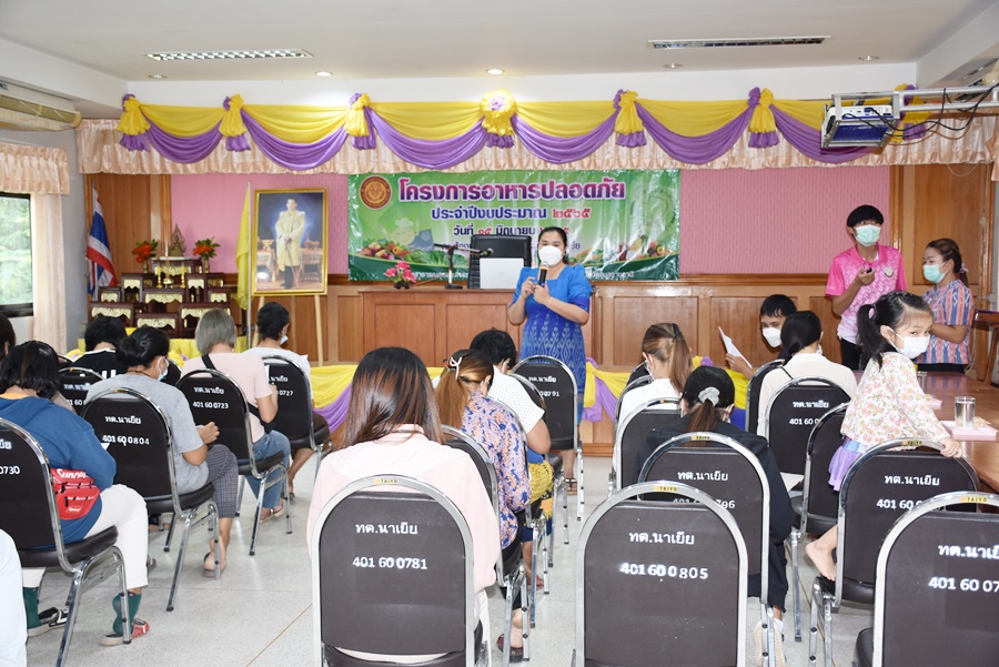 วันพุธ, 15 มิถุนายน 2565 10:36โครงการอาหารปลอดภัย ประจำปี 2565 เมื่อวันที่ 15 มิถุนายน 2565 กองสาธารณสุขและสิ่งแวดล้อม เทสบาลตำบลนาเยีย จัดโครงการอาหารปลอดภัย ประจำปี 2565 เพื่อให้ผู้ประกอบการร้านอาหาร/ผู้สัมผัสอาหารมีความรู้เกี่ยวกับร้านอาหารที่ได้มาตรฐาน อาหารสะอาดรสชาติอร่อย โดยมีนายเพทาย พุทธานุ รองนายกเทศมนตรี เป็นประธานเปิดโครงการ ว่าที่ร้อยตรีชายแดน สุนนท์ชัย กล่าวรายงานวัตถุประสงค์ของโครงการ ทั้งนี้ มีการบรรยายให้ความรู้โดยนักวิชาการสาธารณสุข นักวิชาการสุขาภิบาล เทศบาลตำบลนาเยีย ให้แก่ผู้ประกอบการ ณ ห้องประชุมเทศบาลตำบลนาเยีย จังหวัดอุบลราชธานี