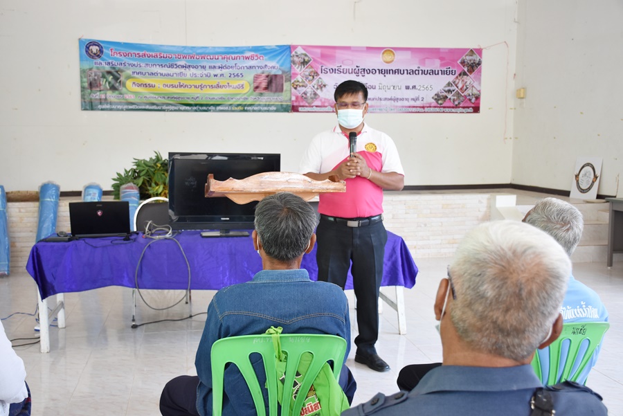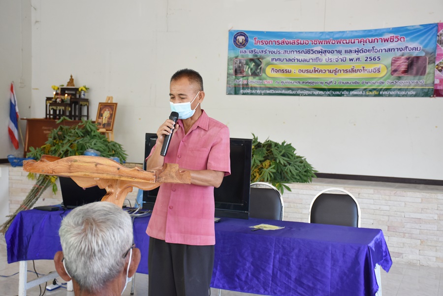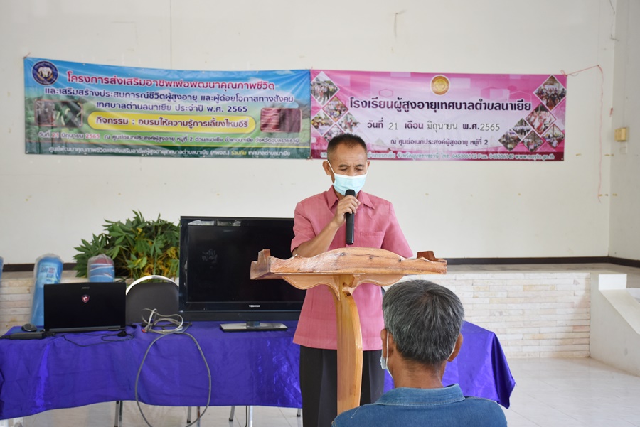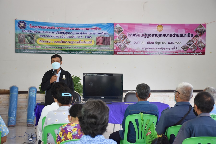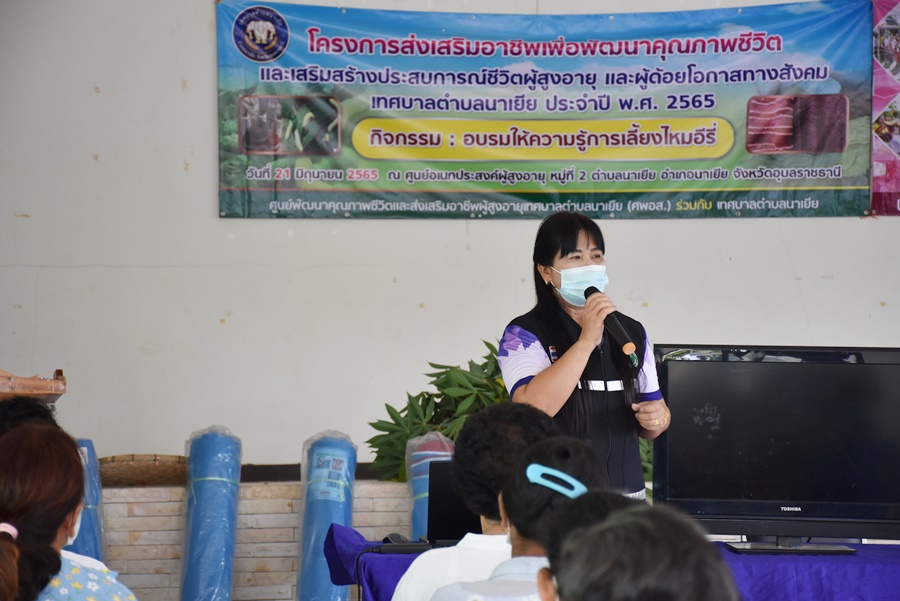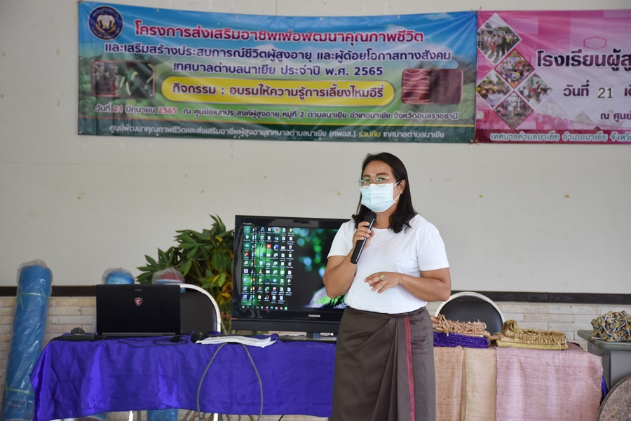 โรงเรียนผู้สูงอายุเทศบาลตำบลนาเยีย ครั้งที่ 2 (กิจกรรมการอบรมให้ความรู้ การเลี้ยงไหมอีรี่)