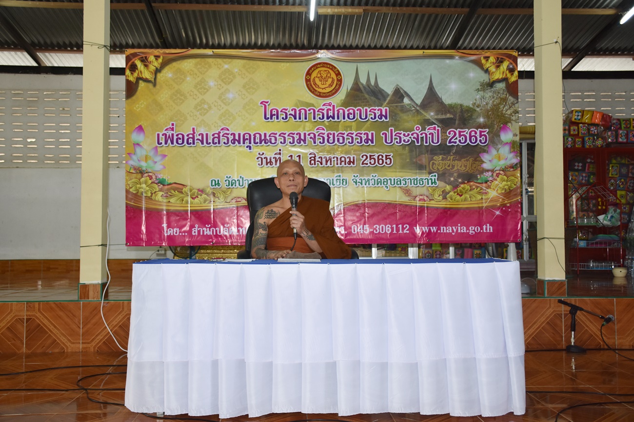 วันพฤหัสบดี, 11 สิงหาคม 2565 19:35วันที่ 11 สิงหาคม 2565 สำนักปลัด เทศบาลตำบลนาเยีย จัดโครงการฝึกอบรมคุณธรรมจริยธรรม ประจำปี 2565 ผู้เข้าร่วมโครงการ คณะผู้บริหาร สมาชิกสภาเทศบาล ข้าราชการ พนักงาน ครู และผู้ดูแลเด็ก เทศบาลตำบลนาเยีย เมื่อเวลา 09.00 น. นายศิลปชัย ประเสริฐศรี นายอำเภอนาเยีย จุดธูปเทียนบูชาพระรัตนตรัย รับศีลรับพรจากท่านเจ้าอาวาสวัดป่านาเจริญ ท่านพระอธิการสัญญา อนุตตโร นายวิระ สุดใจ นายกเทศมนตรีตำบลนาเยีย ได้กล่าวรายงานต่อประธานในพิธี โดยมีนายศิลปชัย ประเสริฐศรี นายอำเภอนาเยีย กล่าวเปิดโครงการฯ และให้เกียรติเป็นวิทยากรการบรรยายความรู้เกี่ยวกับการพัฒนาระบบราชการความรู้ภายในองค์กรเพื่อประโยชน์ทางราชการ และในช่วงบ่ายได้รับความเมตตาจากท่านพระอธิการสัญญา อนุตตโร เจ้าอาวาสวัดป่านาเจริญ บรรยายในหัวข้อ การดำเนินชีวิตอย่างมีสุขภาวะ และท่านพระมหาคมสันต์ ญาณเตโช เจ้าอาวาสวัดโนนสมบูรณ์ บรรยายในหัวข้อ ธรรมสำหรับการปฏิบัติงานตามหลักอิทธิบาท 4 และงานสัมฤทธิ์ ชีวิตรื่นรมย์ ตามหลักสังคหวัตถุ 4 ณ วัดป่านาเจริญ อำเภอนาเยีย จังหวัดอุบลราชธานี