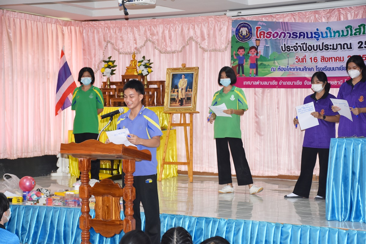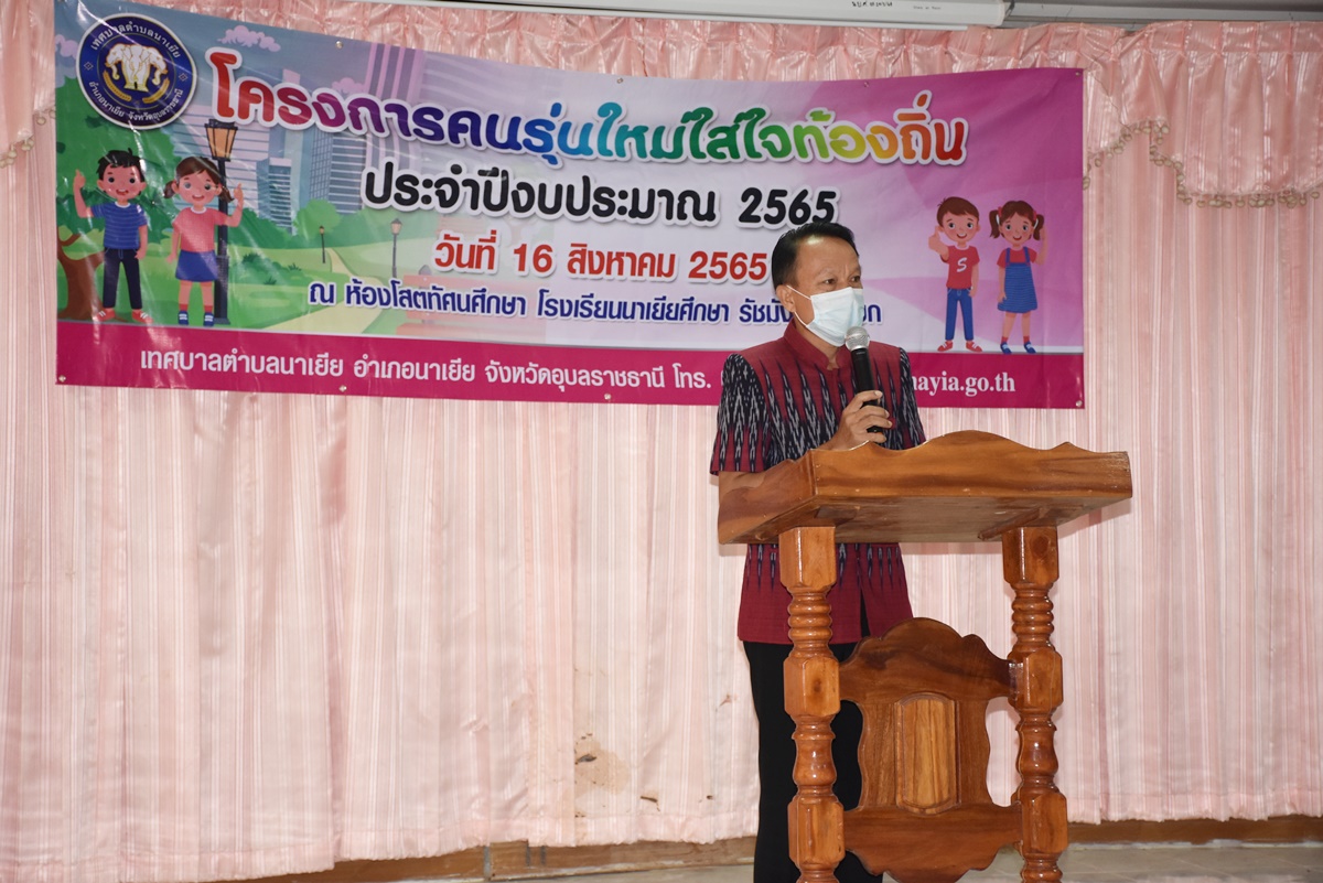 วันพฤหัสบดี, 11 สิงหาคม 2565 09:48โครงการคนรุ่นใหม่ใส่ใจท้องถิ่น 2565 สำนักปลัดเทศบาลตำบลนาเยีย จัดโครงการคนรุ่นใหม่ใส่ใจท้องถิ่น 2565 ณ ห้องโสตทัศนศึกษา โรงเรียนนาเยียศึกษา รัชมังคลาภิเษก อำเภอนาเยีย จังหวัดอุบลราชธานี วันที่ 16 ส.ค. 65 นายวิระ สุดใจ นายกเทศมนตรีตำบลนาเยีย เป็นประธานเปิดโครงการฯ ว่าที่ร้อยตรีชายแดน สุนนท์ชัย ปลัดเทศบาลกล่าวรายงานวัตถุประสงค์โครงการ พร้อมด้วยคณะผู้บริหาร รองประธานสภาเทศบาล สมาชิกสภาฯ ผู้ใหญาบ้าน หมู่ 2 ประธานชุมชน หัวหน้าสำนักปลัด ผู้อำนวยการกองให้เกียรติร่วมในพิธีเปิด และเจ้าหน้าที่สำนักปลัดเทศบาล คอยอำนวยความสะดวกให้กับน้องๆที่ร่วมกิจกรรม โดยได้รับความอนุเคราะห์สถานที่และการสนับสนุนจากนายประดิษฐ์ พันยา ผู้อำนวยการ รร.นาเยียศึกษาฯ ให้น้องๆเยาวชน ชั้นมัธยมศึกษา ชั้นปีที่ 4 เข้าร่วมกิจกรรม โดยมีวิทยากรนำโดยนายวรนิธิ ศรัทธาธรรม นายปรัญญา อุดมญาติ นายณัฐพงศ์ จอมหงษ์ วิทยากรให้ความรู้และกิจกรรมกลุ่ม ส่งเสริมสนับสนุนการเป็นพลเมืองของเยาวชนในระบบประชาธิปไตย