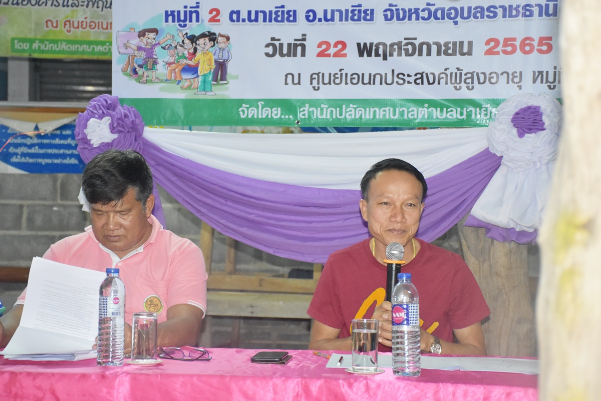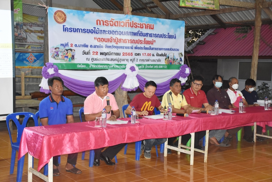 การประชุมประชาคมโครงการขอใช้และขอถอนสภาพที่ดินสาธารณประโยชน์(สาธารณประโยชน์ดอนเจ้าปู่) หมู่ที่ 2 เพื่อประโยชน์ในราชการและส่วนรวม ณ ศูนย์เอนกประสงค์ผู้สูงอายุเทศบาลตำบลนาเยีย หมู่ที่ 2