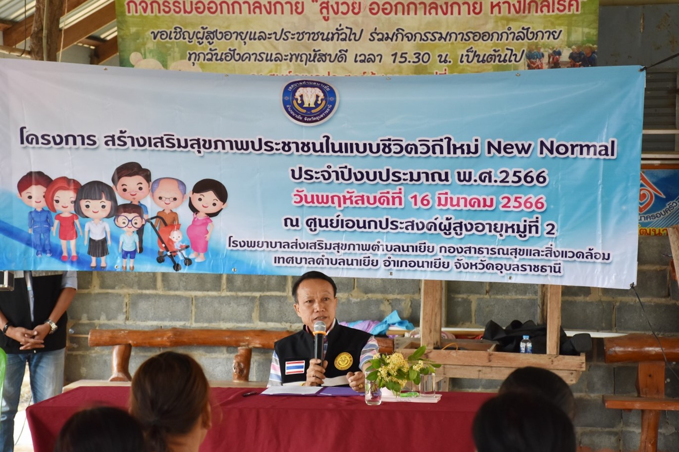 วันที่16 มีนาคม 2566 เทศบาลตำบลนาเยีย โดยโรงพยาบาลส่งเสริมสุขภาพตำบลนาเยีย กองสาธารณสุขและสิ่งแวดล้อม เทศบาลตำบลนาเยีย จัดโครงการสร้างเสริมสุขภาพประชาชนในแบบวิถีใหม่ New Normal ประจำปีงบประมาณ พ.ศ. 2566 โดยนายพรทวี สุวรรณพรม ผู้ช่วยสาธารณสุขอำเภอนาเยีย กล่าวพบปะและวิทยากรจากโรงพยาบาลนาเยีย อบรมให้ความรู้การดูแลสุขภาพกับแกนนำสุขภาพในเขตเทศบาลตำบลนาเยีย โดยมีนายวิระ สุดใจ นายกเทศมนตรีตำบลนาเยีย เป็นประธานเปิดโครงการฯ ว่าที่ร้อยตรีชายแดน สุนนท์ชัย ปลัดเทศบาลตำบลนาเยีย กล่าวรายงานวัตถุประสงค์ของโครงการ พร้อมด้วยคณะผู้บริหาร สมาชิกสภาเทศบาล หัวหน้าสำนักปลัด ผู้อำนวยการกอง และพนักงานร่วมพิธีเปิด ณ ศูนยฺผู้สูงอายุเทศบาลตำบลนาเยีย อำเภอนาเยีย จังหวัดอุบลราชธานี