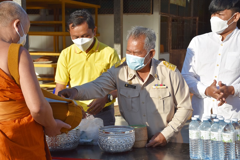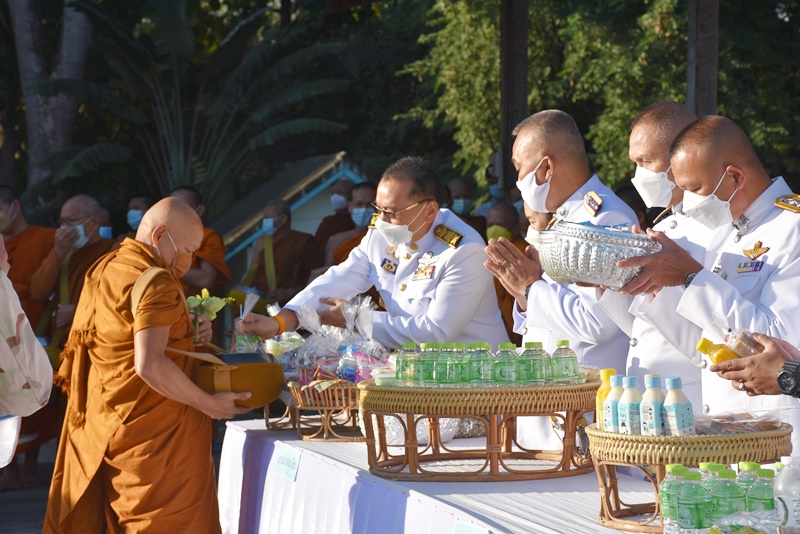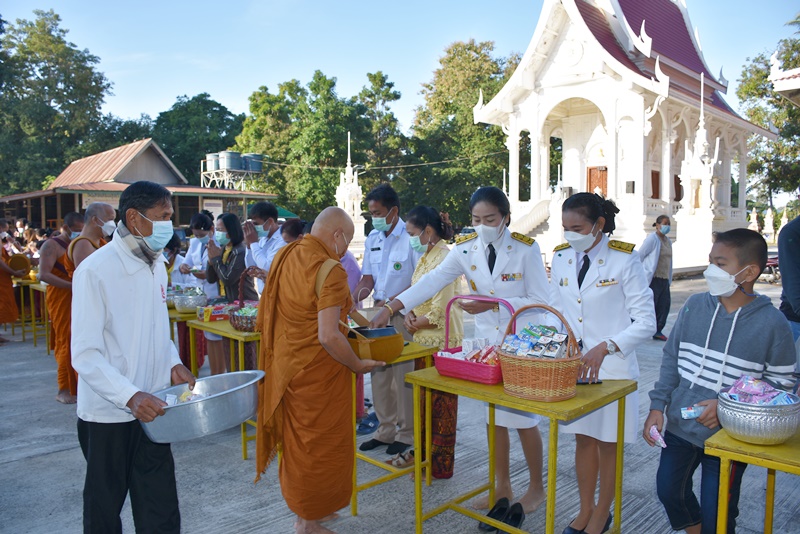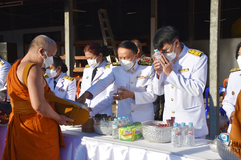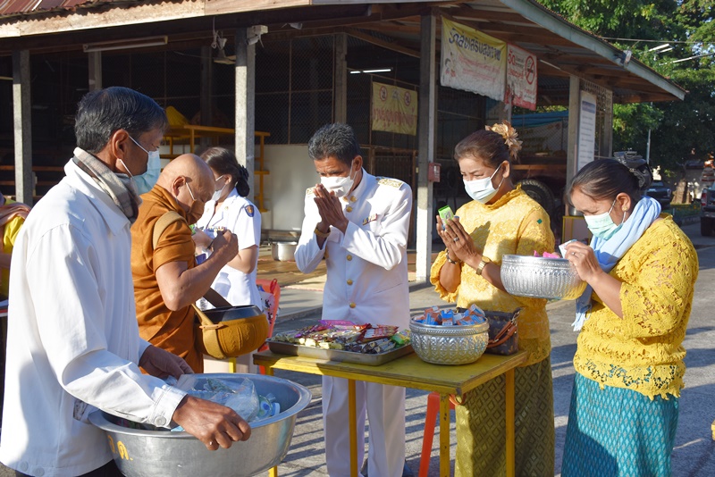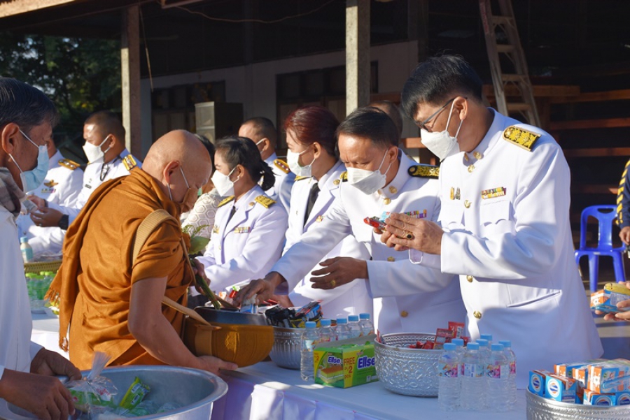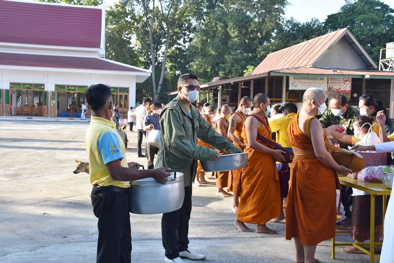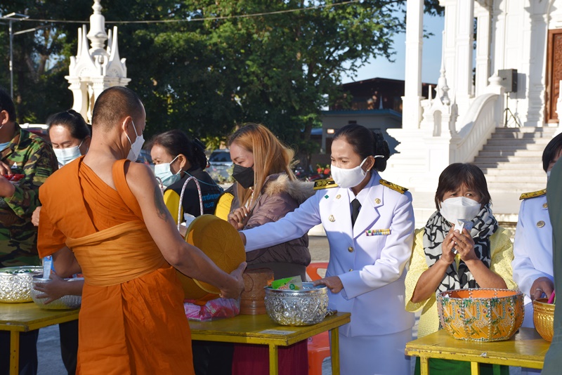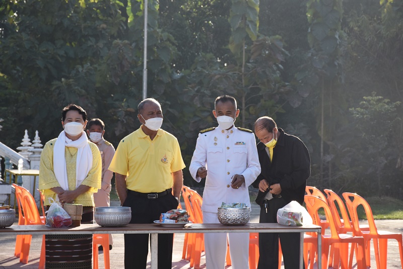 พิธีทำบุญตักบาตรพระสงฆ์และสามเณร เนื่องในวันคล้ายวันพระบรมราชสมภพพระบาทสมเด็จพระชนกาธิเบศร มหาภูมิพลอดุลยเดชมหาราช บรมนาถบพิตร วันชาติ และวันพ่อแห่งชาติ 5 ธันวาคม 2564